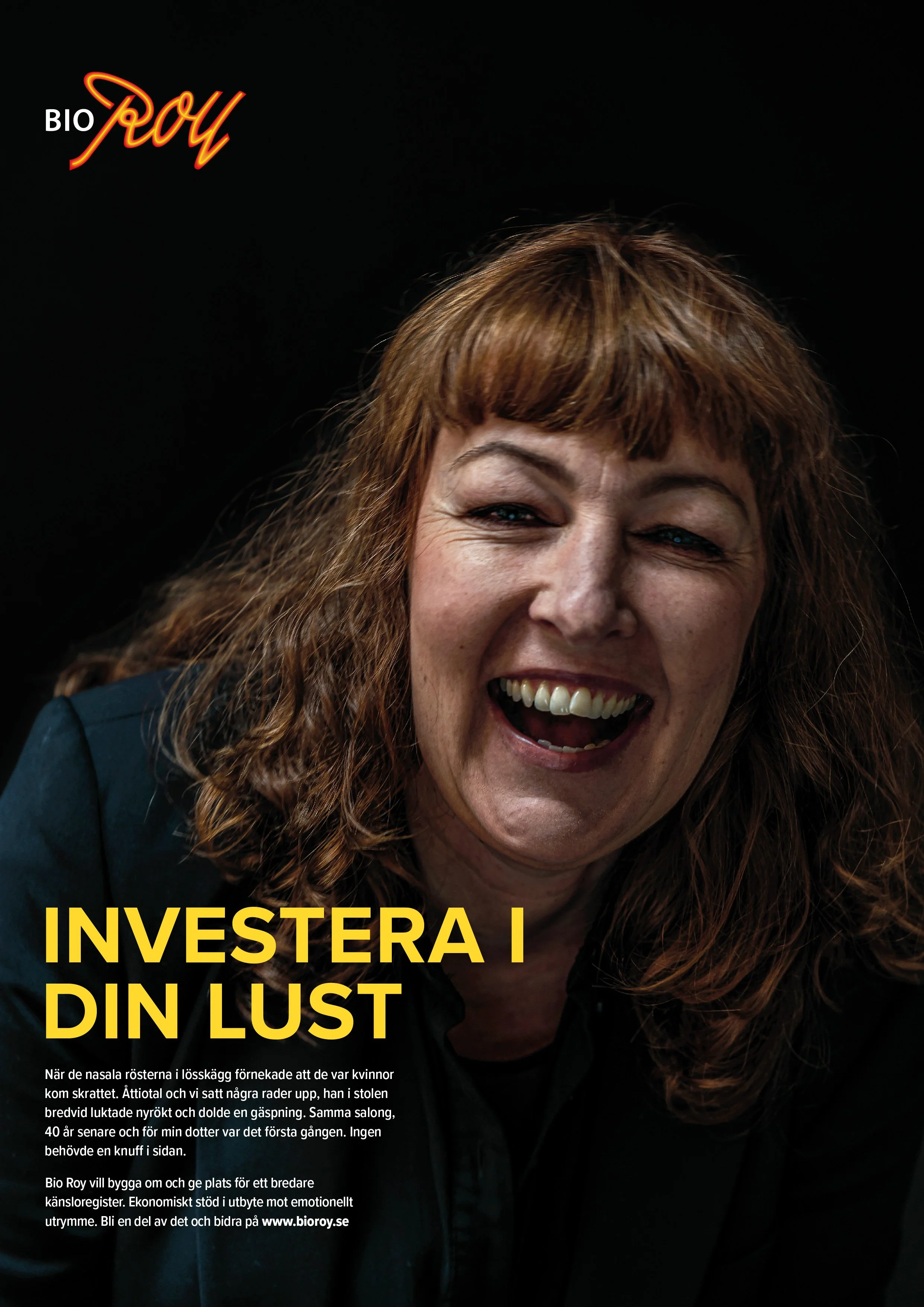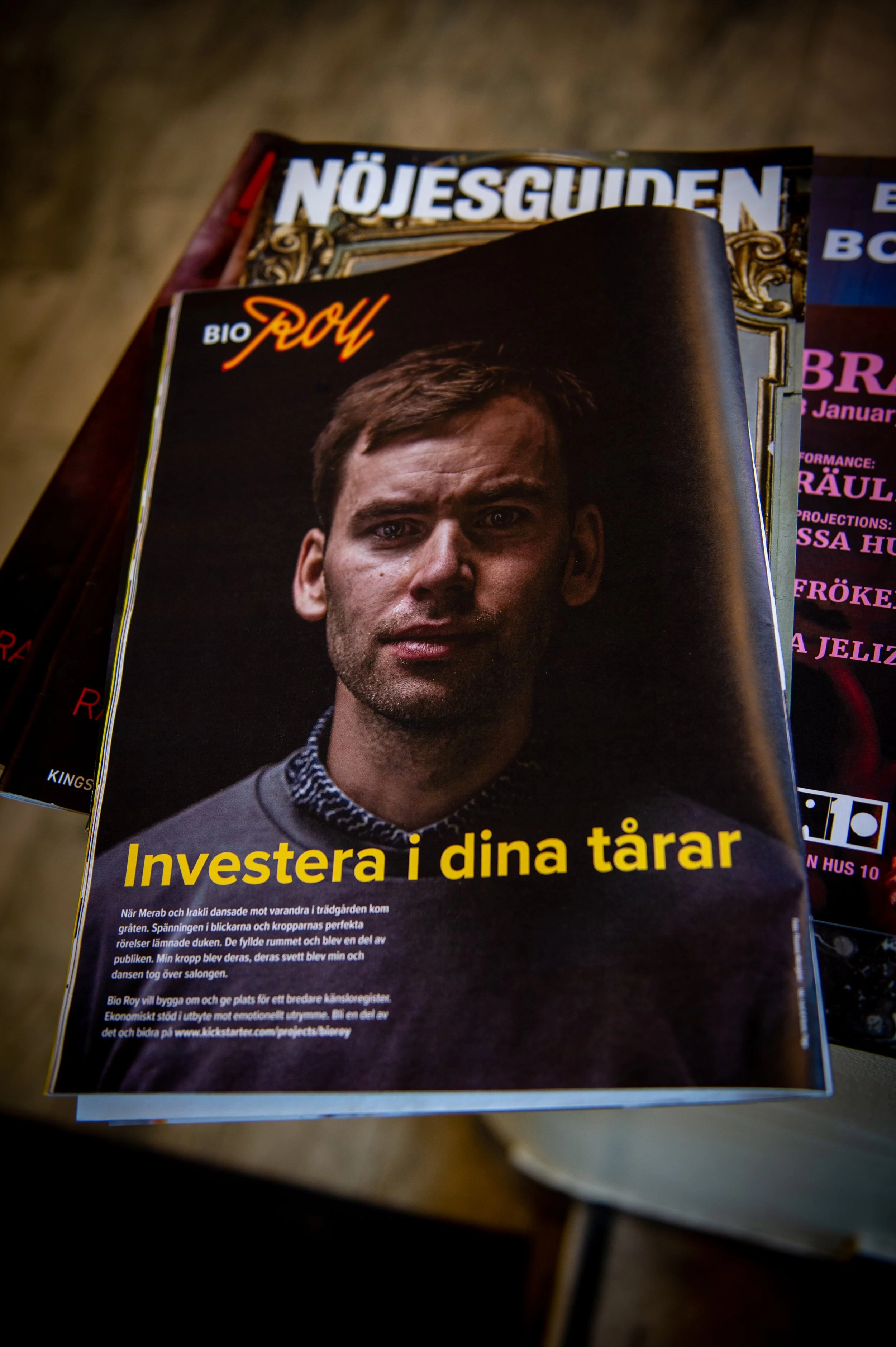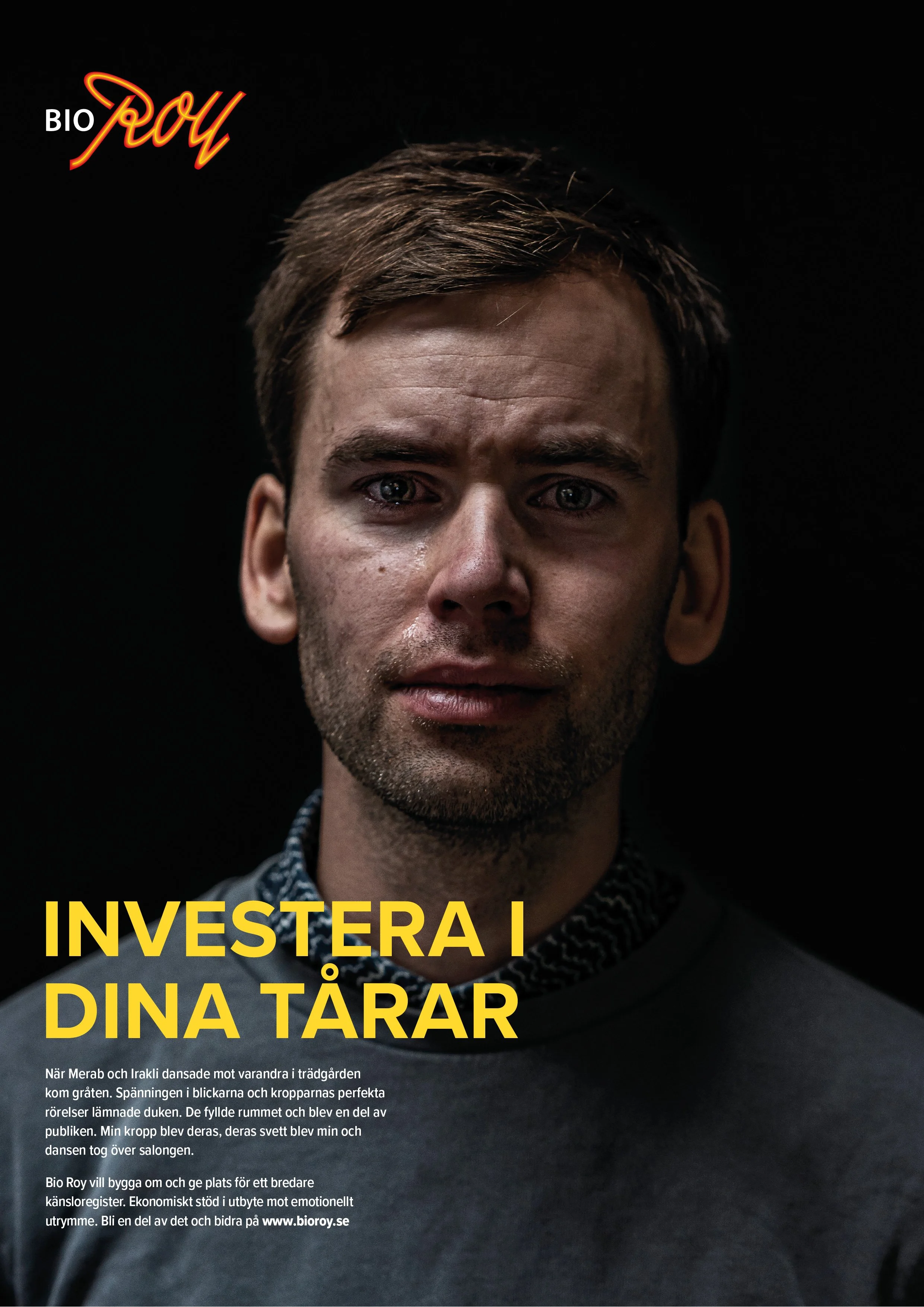 Kampanjen Investera i dina känslor. Printannonser med text och bild som berättar om en känsla framkallad på Bio Roy. Tårar, harmoni och lust. Annonserna uppmanar till ekonomiskt stöd i utbyte mot emotionellt utrymme.