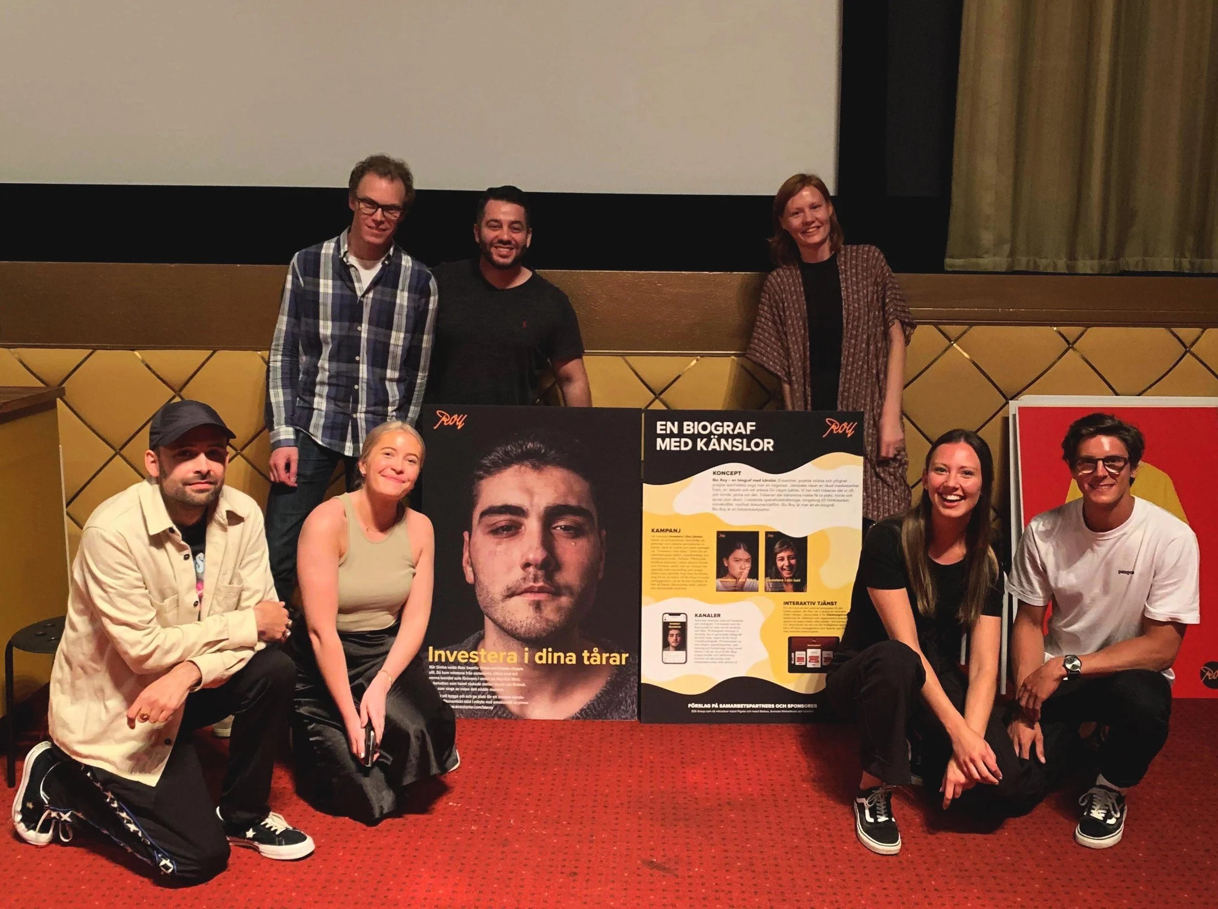 På bild syns hela tävlingsgruppen som tog hem vinsten. Från vänster: Philip Gates, UX, Lisa Wikståhl, IP Grafisk Produktion & Form, Fredrik Leemann, Webbutvecklare, Mani Talebi, UX, Lovisa Olausson, Copywriter, Emelie Jonson, Art director, Dennis Lind, Digital Designer, och utanför bild Amie Faily, Game Programmer. När vi fick förfrågan om att förverkliga vårt koncept fortsatte några av oss, och utgick utifrån de som behövdes samt hade tid.